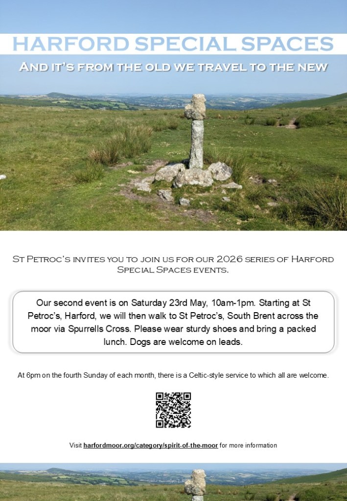 Following from our regular fourth Saturday breakfast in St Petroc’s Church, Harford, from 8.30 – 10am, we will be walking across the moor to St Petroc’s, South Brent. Everyone is welcome to both these events.